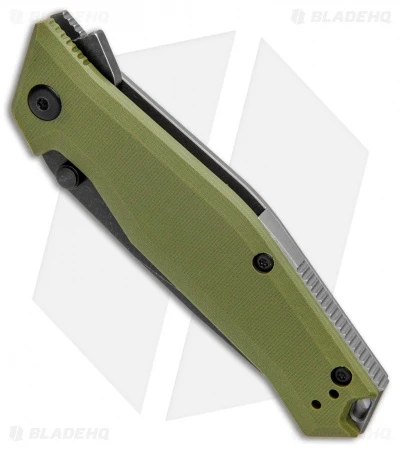 This Apostate model sports an OD green G-10 handle and a black stonewashed blade.