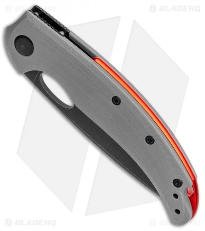 This Steel Will Sedge has a 3.375″ blade with a satin finish, a gray G-10 handle, and a red backspacer.